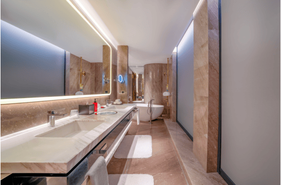 酒店最引人注目的特色,是每间客房都接入了天然温泉,让客人能体验福州这座“温泉之都”独有的富含硅等元素的健康温泉泡浴。