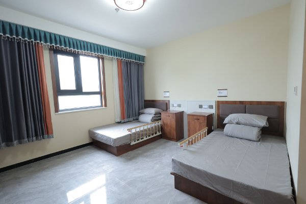 生活用房90间,目前共设有床位180张,绿化、健身、休闲面积8200余平方米。房间内设有独立卫生间可供洗浴,配备电视、空调、床头柜、衣帽柜及紧急呼救系统、公共上网区间等;娱乐设施包含有厅内乒乓球室、台球室、棋牌室、阅读区、老年人室内外活动区域(可进行各项文娱活动);康复设施包含有康复训练用阶梯、平行杆、上线肢康复训练车、辅助步行训练器、站立架、重锤式手指肌训练桌、可调式沙磨板、滚筒、PT床、体操棒与抛接球、OT综合训练工作台、简易上肢功能评价器、背力计、角度尺、握力计、红外线治疗仪、电脑中配治疗仪、磁振热治疗仪、颈腰椎治疗牵引床等康复理疗器械。可为入住老人制定全方位专业的康复理疗方案并提供康复训练指导;设有餐厅,针对老人身体情况进行送餐到屋服务;安全保障设备有消防设施、监控设备、无障碍卫生间、安全扶手等,适老化设施完备。