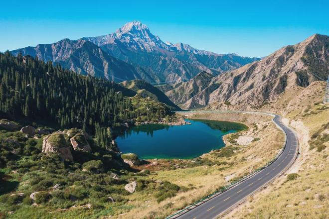 两颗宝石明珠,就这样缀在天山上。珍贵的雪莲生长于此,行驶在路上偶然间也能看到雪鸡、黄羊、雪豹的踪迹。