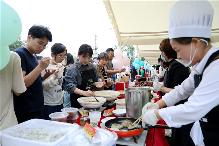 舞台一旁的美食競技同樣熱鬧。本土大廚們各展絕技,精心烹制出一道道兼具顏值與口感的佳肴,鮮香扑鼻的味道吸引不少人駐足。群眾評委現場認真品鑒、公正投票,最終評選出當晚的“廚王”,后續有望代表六安市參加省級比拼。此外,現場設置的美食市集也人氣滿滿,村民與游客穿梭在攤位間,一邊品嘗特色小吃,一邊閑話家常,濃濃的煙火氣裡滿是愜意與溫馨。